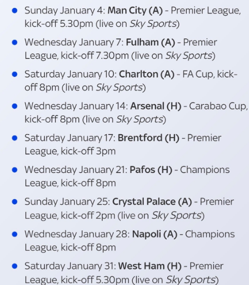 A brutal run awaits, starting away at Manchester City, followed by Arsenal, Napoli, and a sequence of London derbies.
